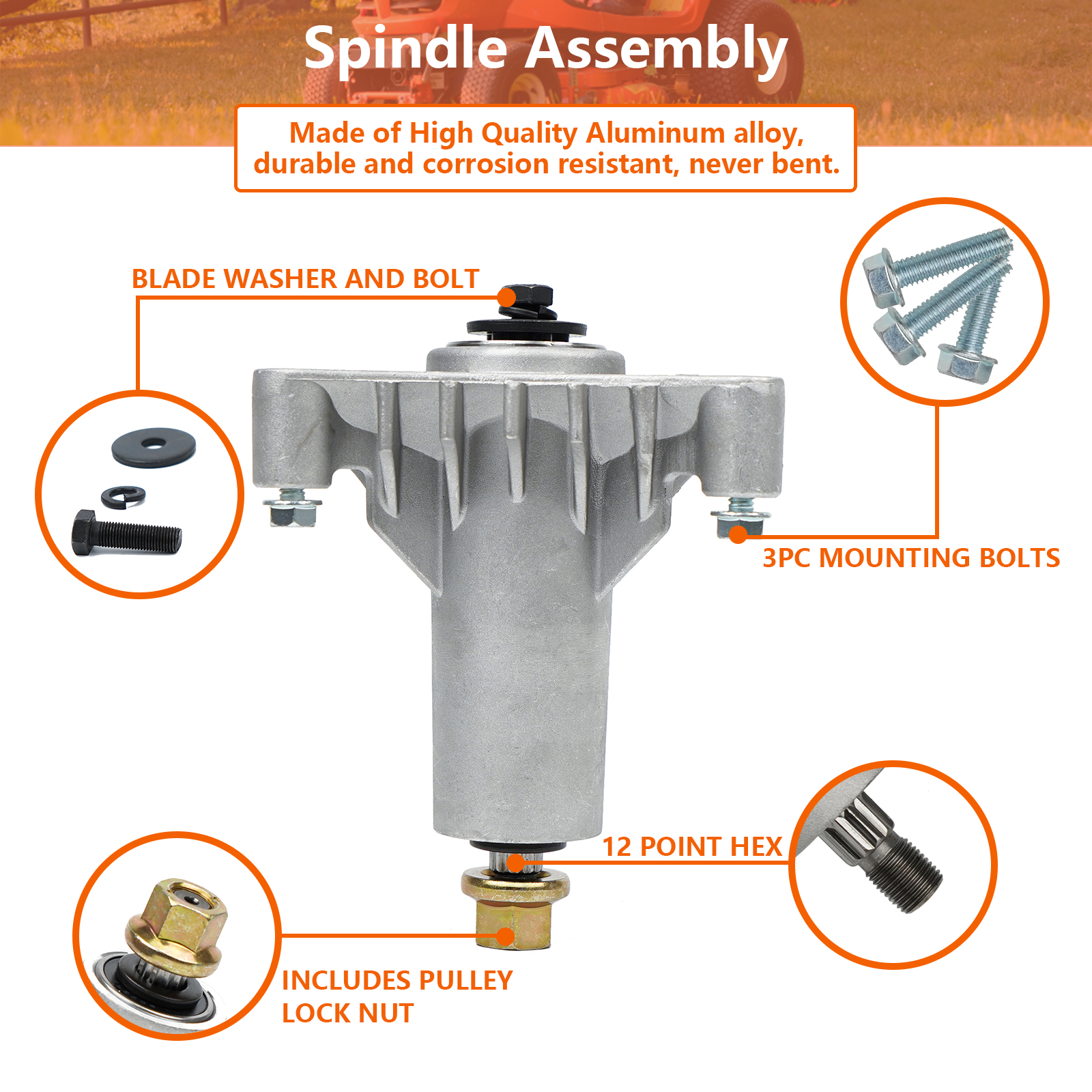 * Enhance Mower Deck Functionality by Replacing Broken or Bent Tractor Spindles.