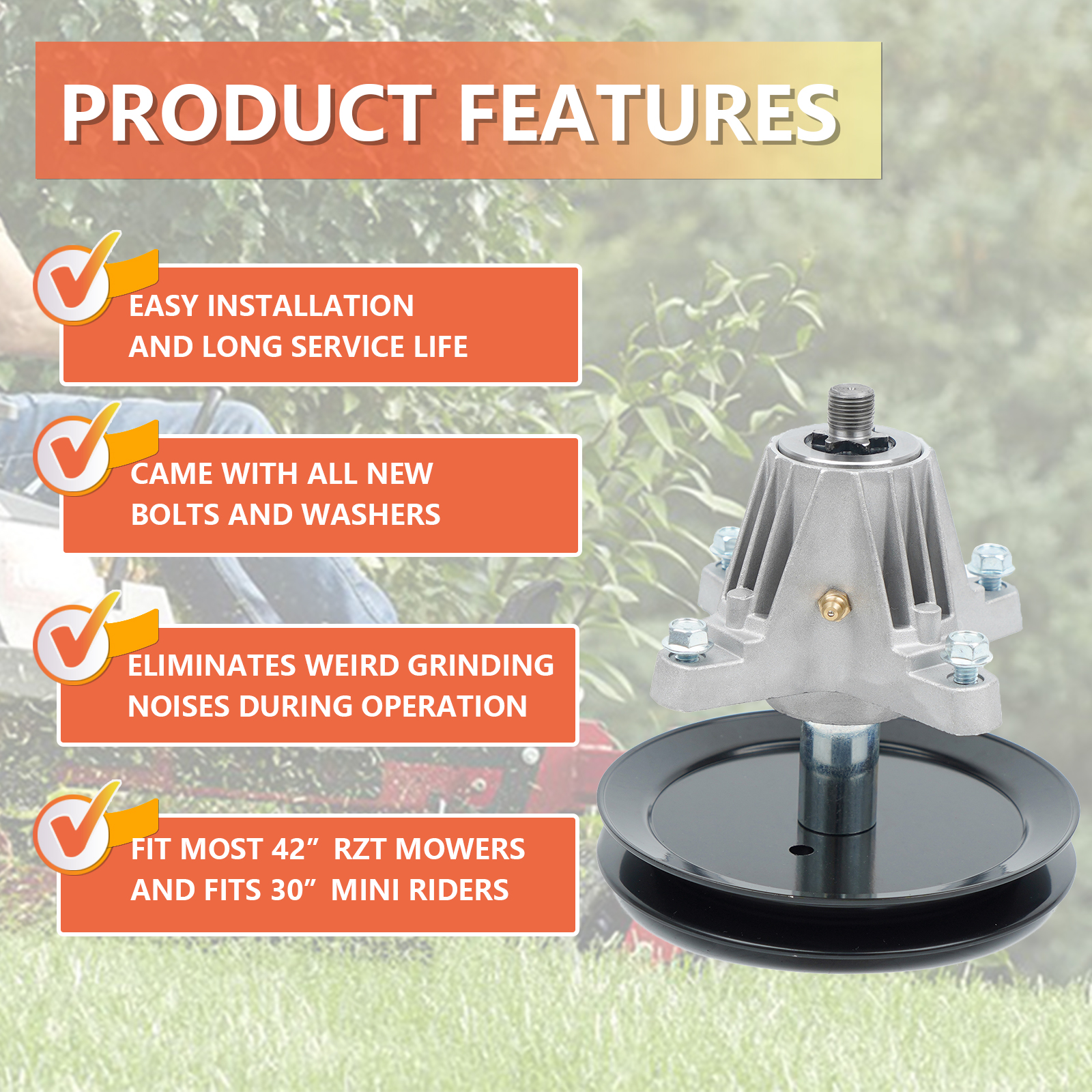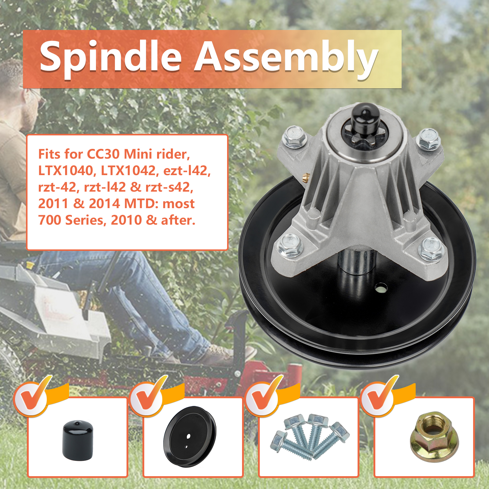 * Compatible with: This spindle assembly work with 46 inch mower deck tractor riding mower.